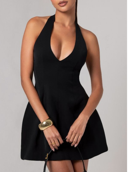 Fashion style sexy deep v dress temperament Spice girl halter bag hip skirt girl
