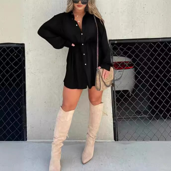 Fashion solid color long sleeved shirt jumpsuit