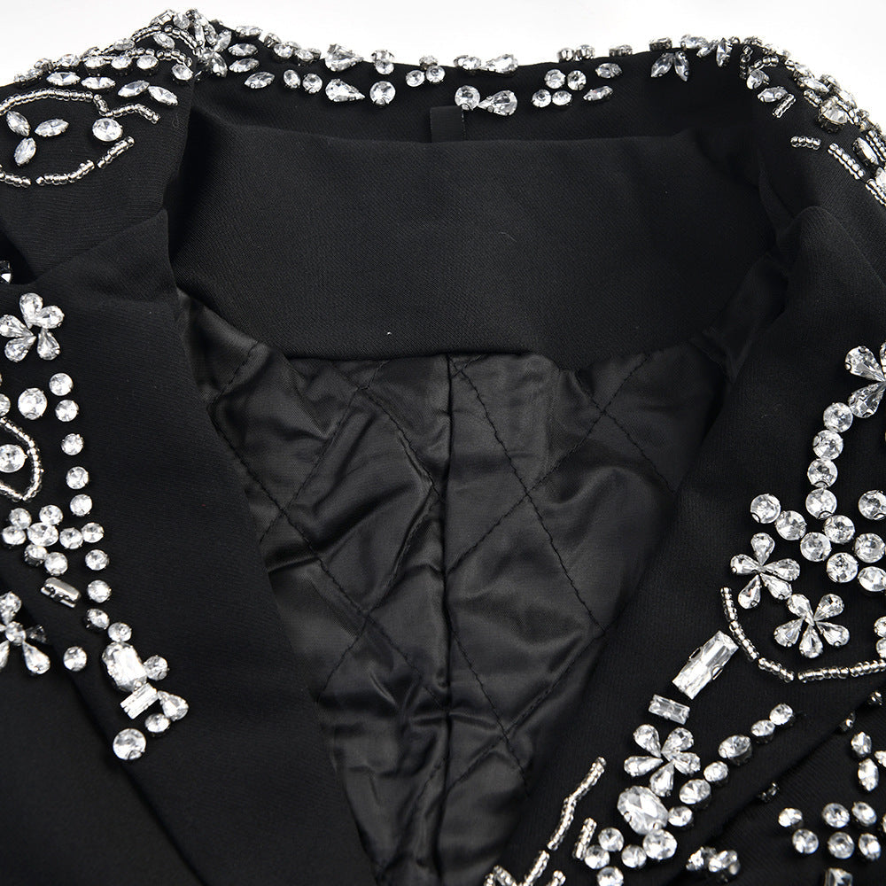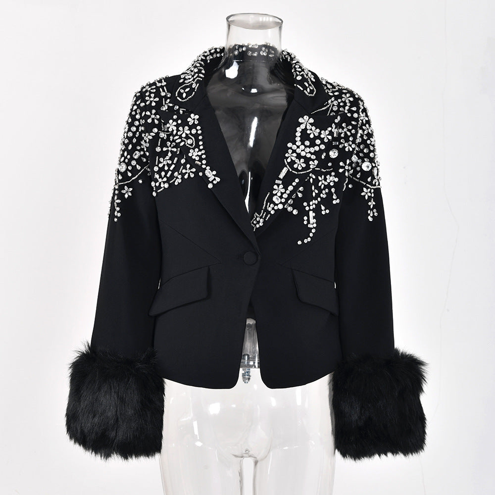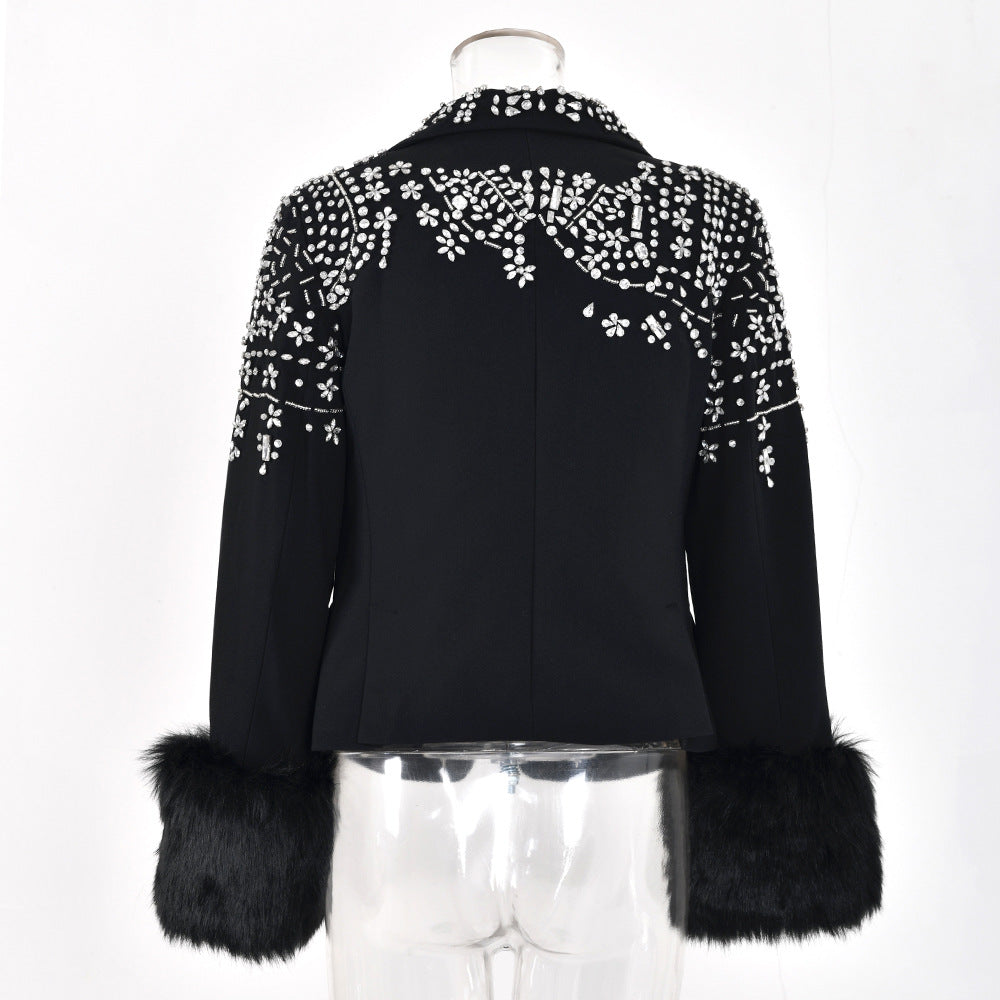Women Rhinestones Fur Collar Cotton-padded Blazer New Lapel Long Sleeve Jacket Fashion Tide Autumn Winter