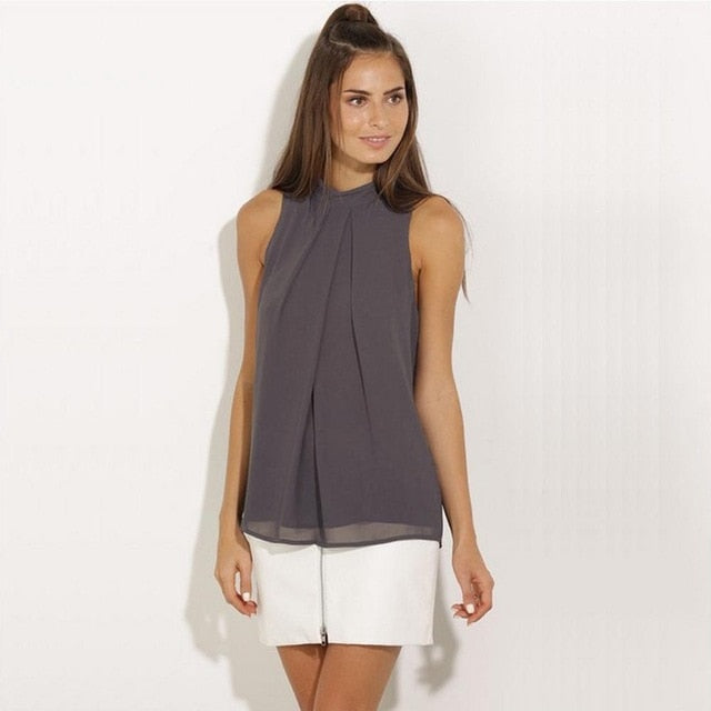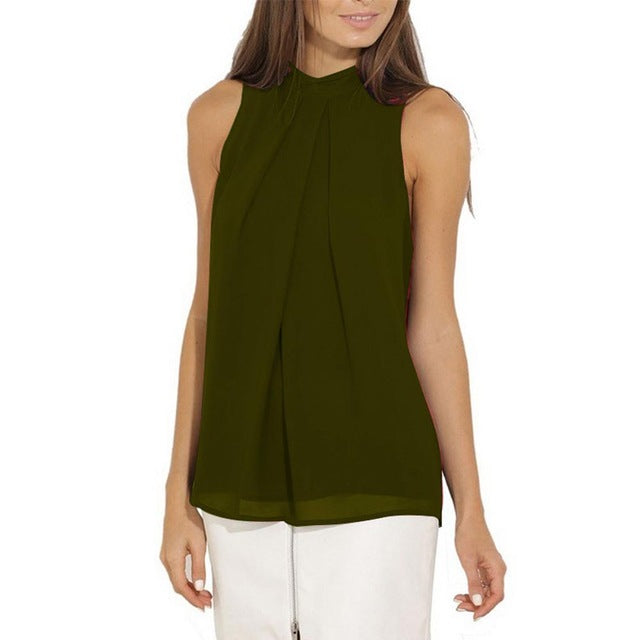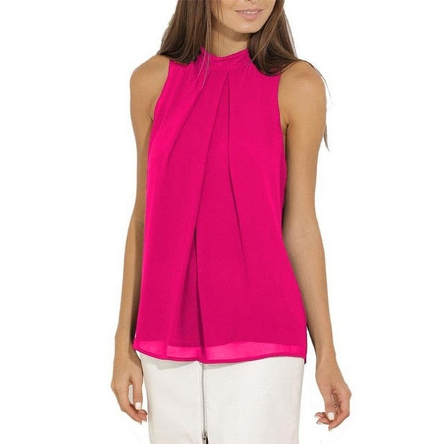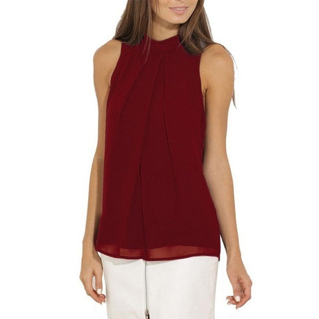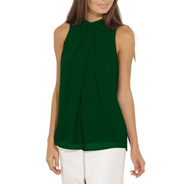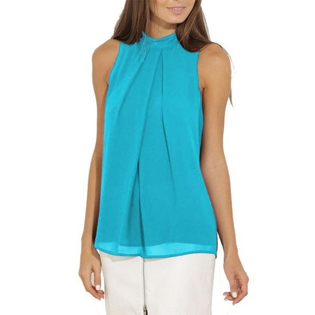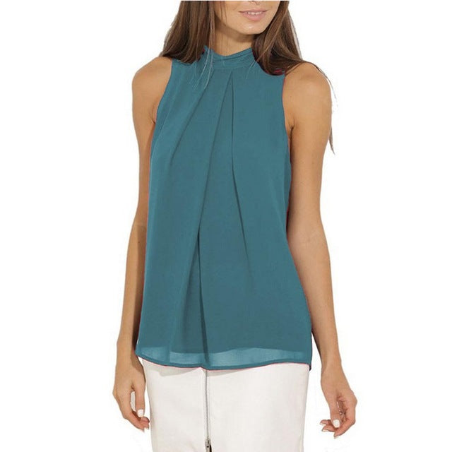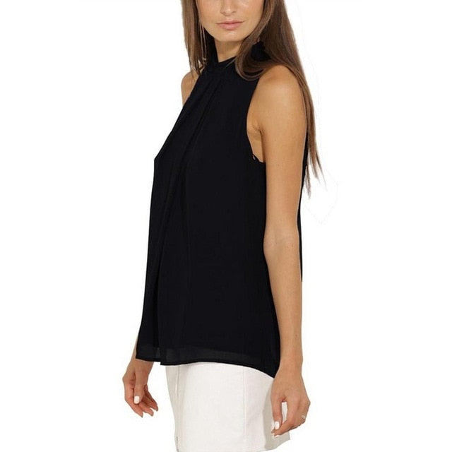 Halter Sleeveless Chiffon Blouse Shirt Womens Tops and Blouses Ladies Tops Blusas Mujer Blusa Feminina Plus Size Women Shirts