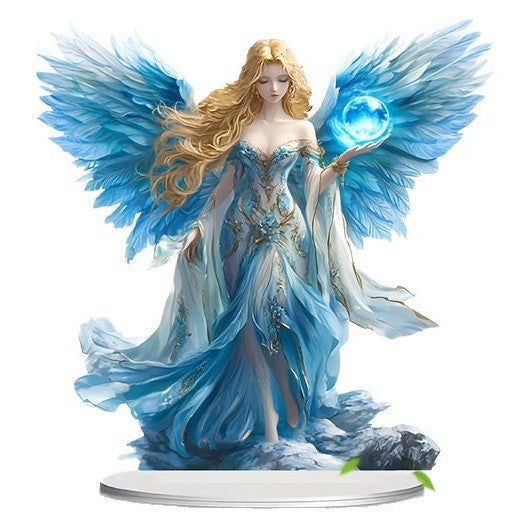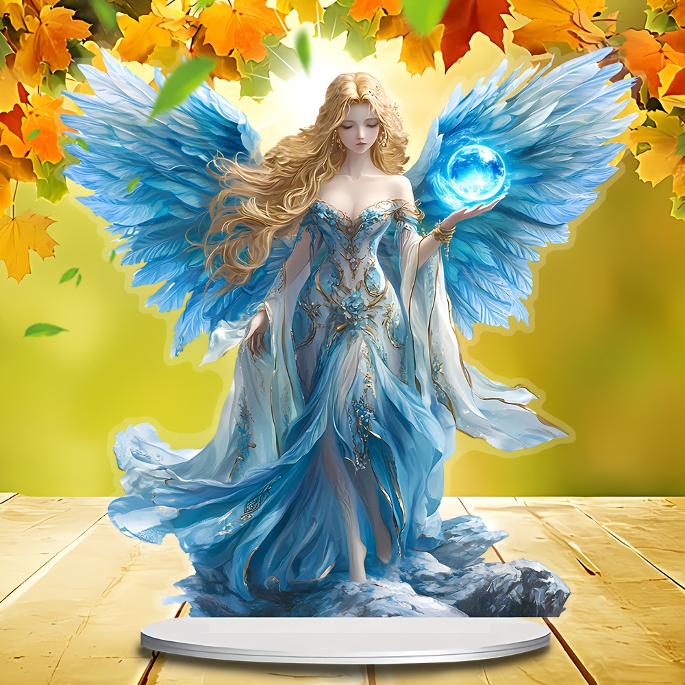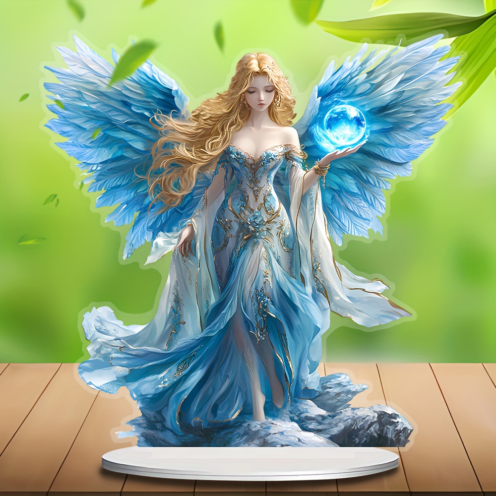 Blue Wing Ornament/guardian Angel Statue/acrylic Desktop Decoration/including Bracket, Suitable for Home and Office.