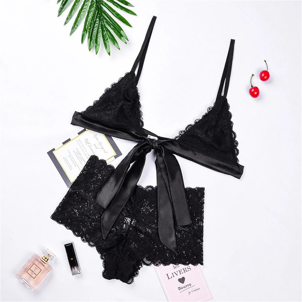 Langerie Sexy Lingerie Porno Suit Woman Lace Embroidery Underwear Women Bow Tie Push Up Bra Briefs Outfit lenceria sensual mujer