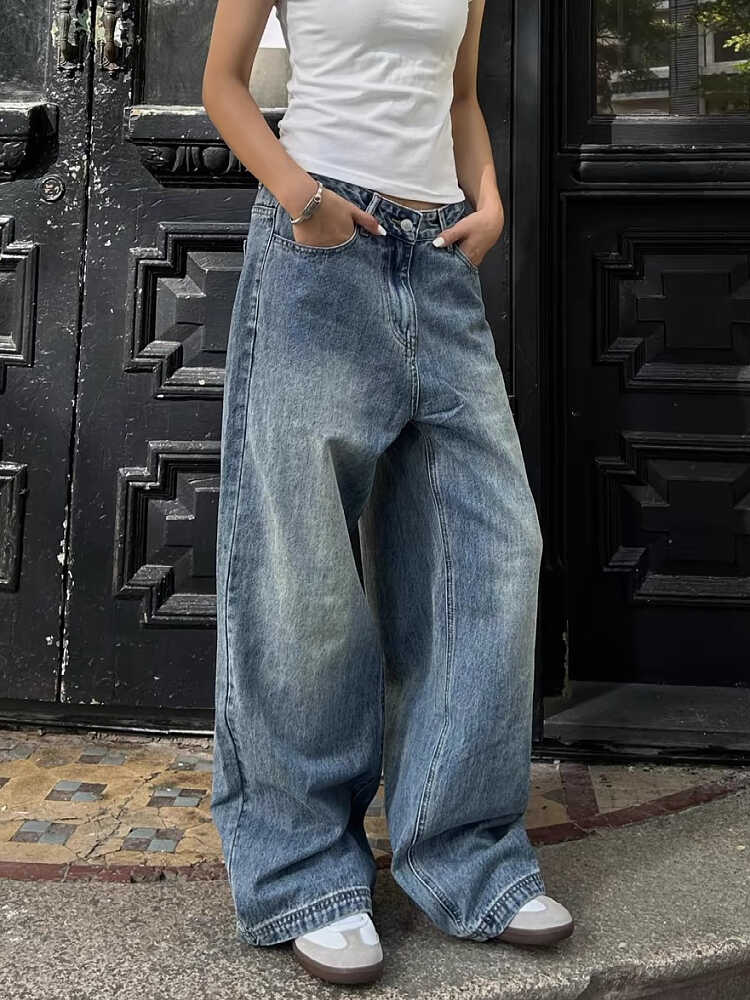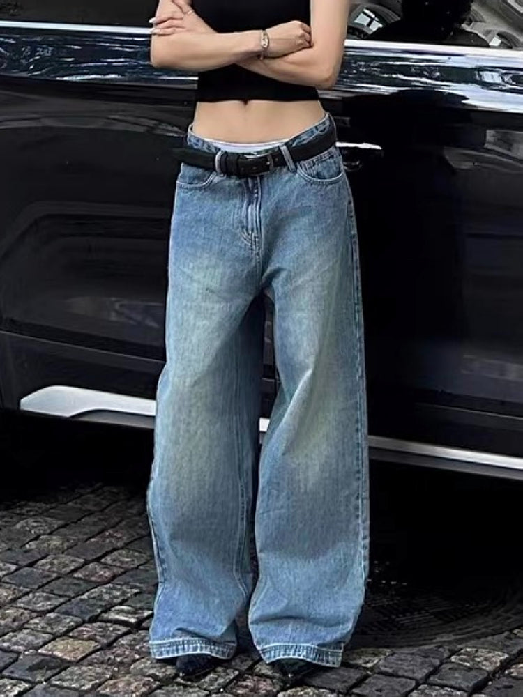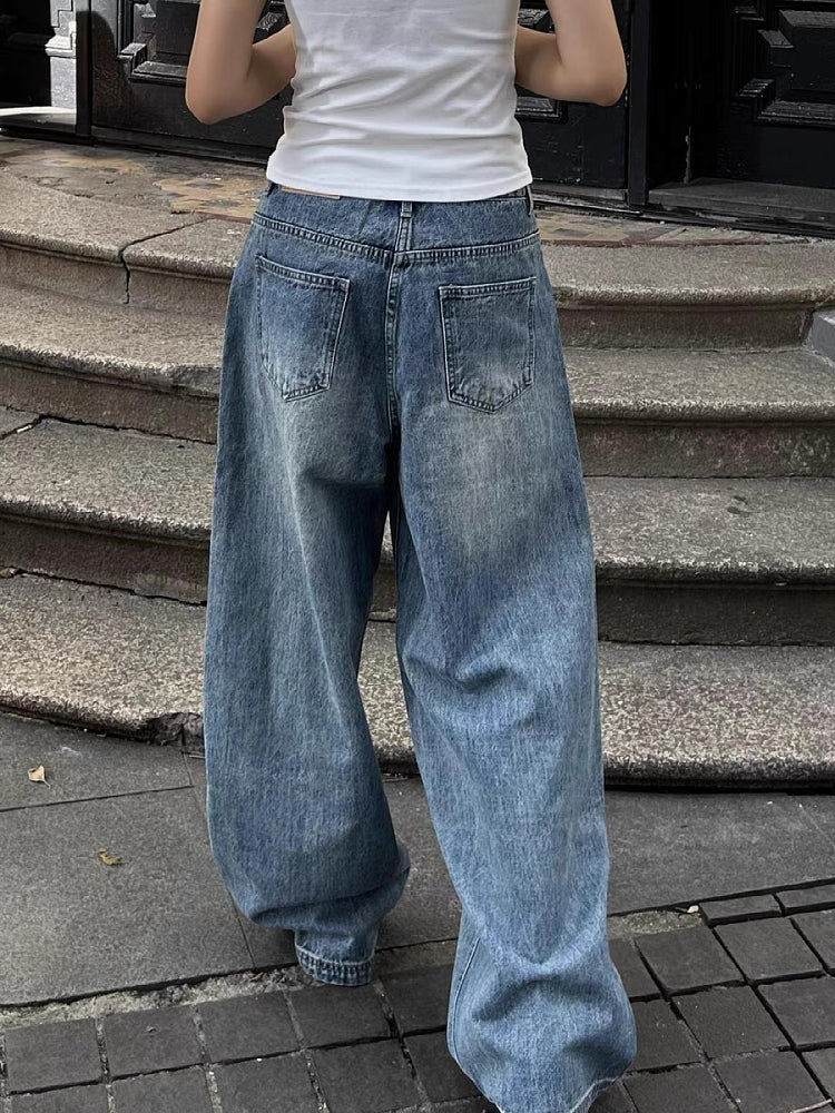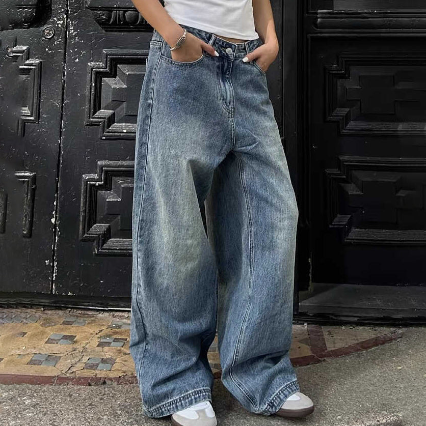 Large size American retro washed cleanfit straight leg jeans, men's and women's trendy brand loose drape wide leg floor pants